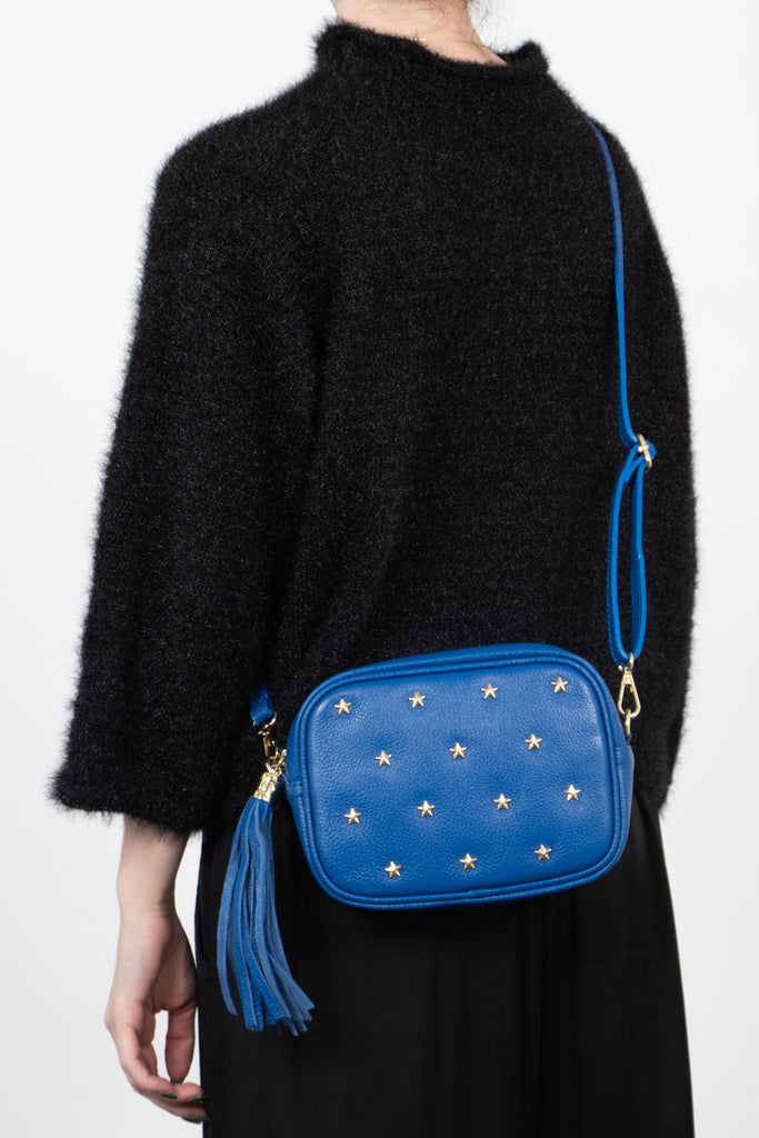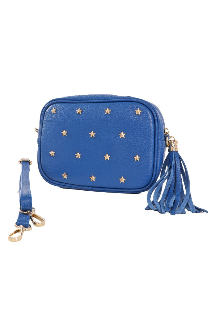 Eloise - Italian Leather Star Studded Crossbody Bag - Royal Blue, Pebbled