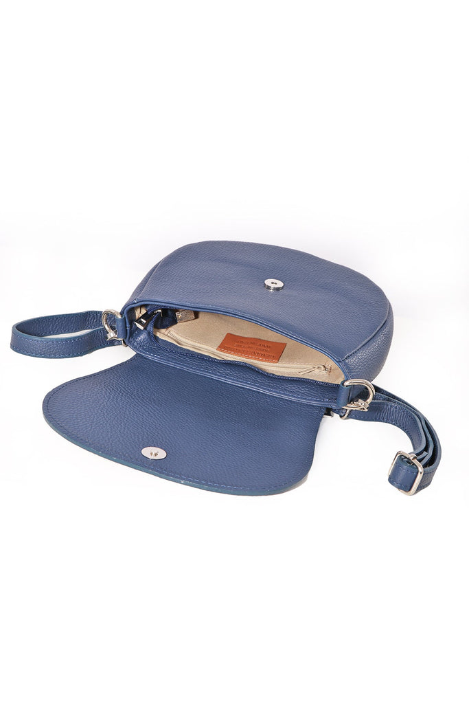 Cassandra Italian Leather Crescent Crossbody - Navy Blue, Pebbled