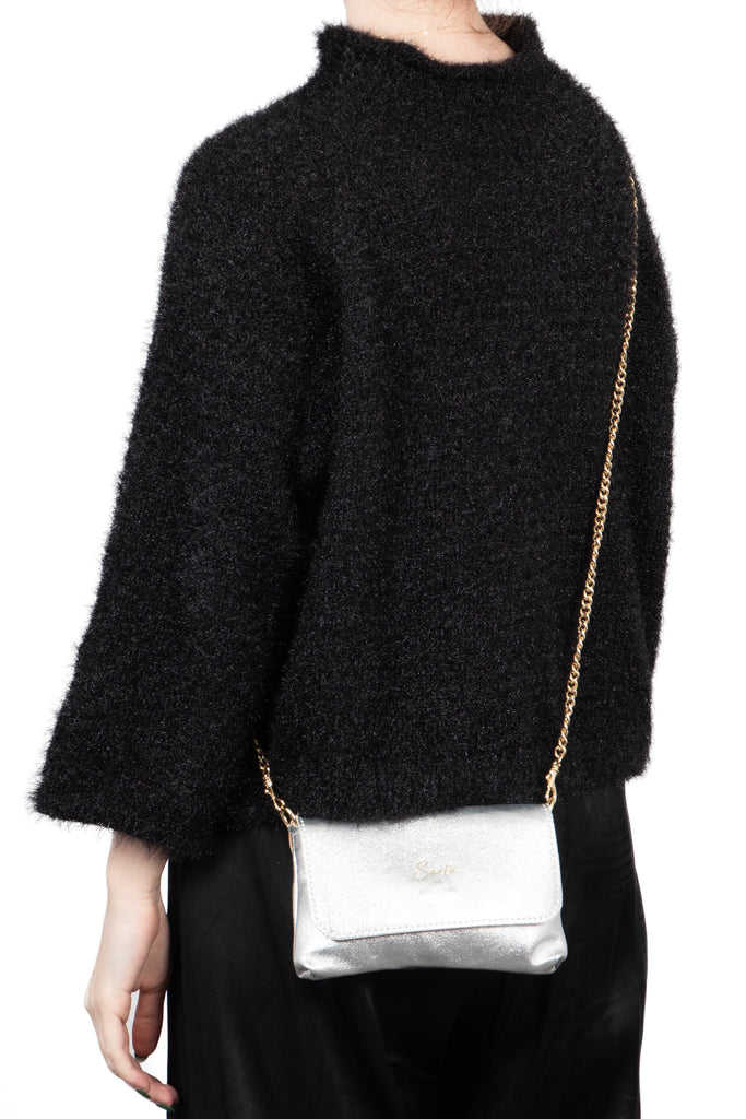 This compact crossbody bag is crafted from genuine Italian leather. Featuring classic gold hardware, a removable leather handle and chain strap. This luxurious bag can be worn many ways; carried as clutch bag or worn over the shoulder or cross body.