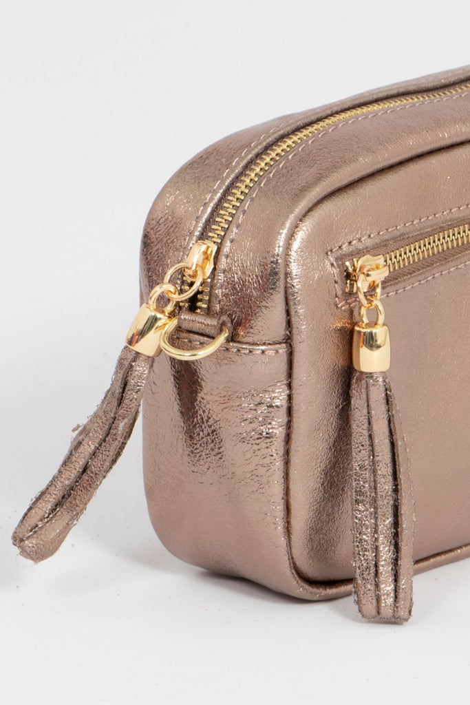 Fleur - Italian Leather Crossbody Bag - Champage, Metallic