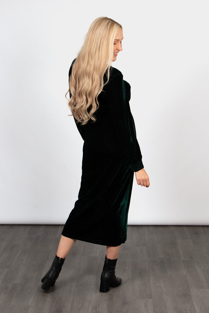 Ella Round Neck Midaxi Dress - Green, Velvet