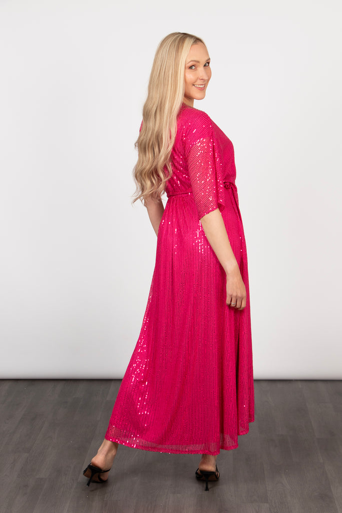 Liv Midi Wrap Dress - Raspberry, Sequin
