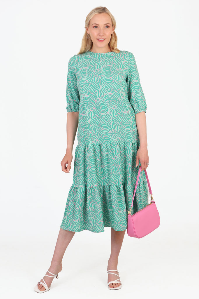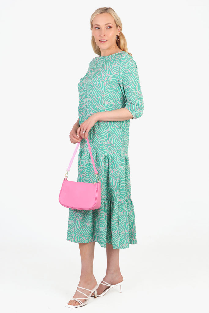 Tiered Midi Dress - Green, Zebra Lightning Bolt