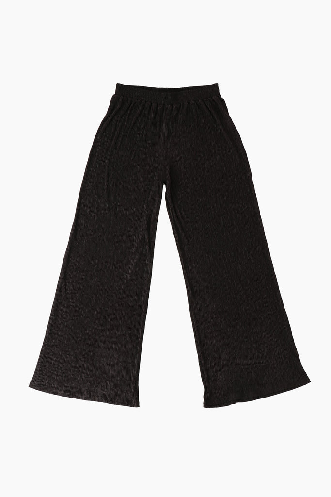 - Plain Textured Plisse Wide Leg Trousers in Black