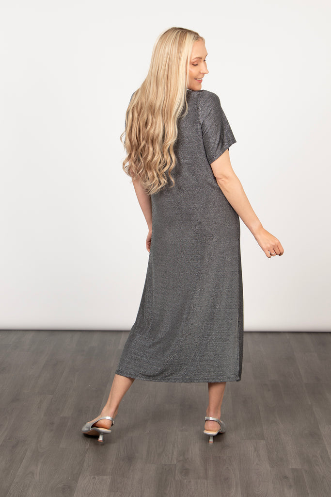 Celeste Midaxi T-Shirt Dress - Silver, Glitter