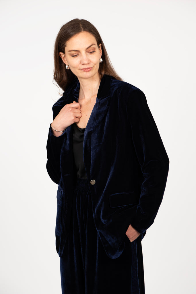 Blake Boyfriend Blazer - Navy Blue, Velvet