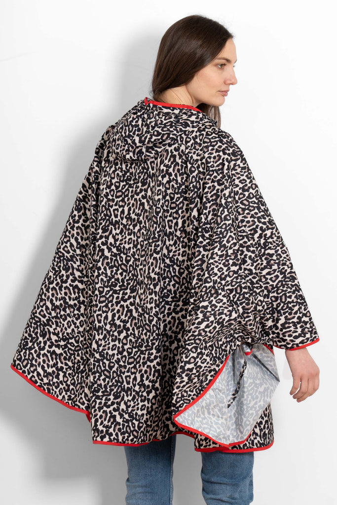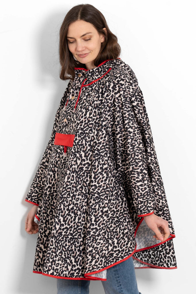Aspen Waterproof Rain Poncho - Cream/Red, Leopard