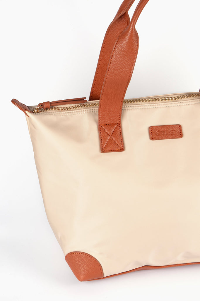 Harlowe Classic Tote Bag - Cream, Nylon/PU