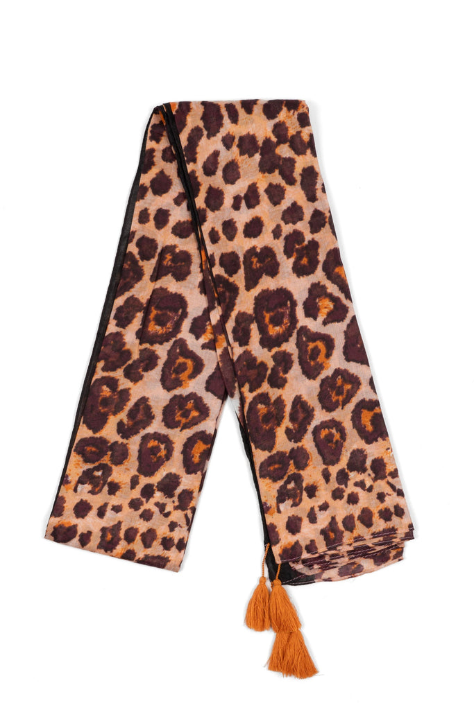 Kai Lightweight Cotton Scarf - Neutral, Leopard Print