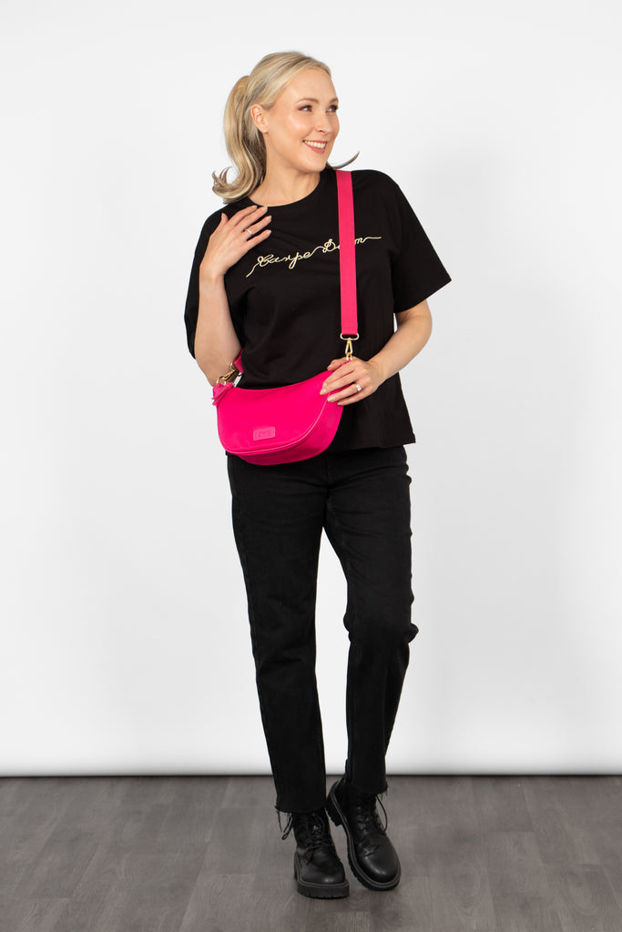 Quinn Half Moon Crossbody Bag - Pink, Nylon/PU