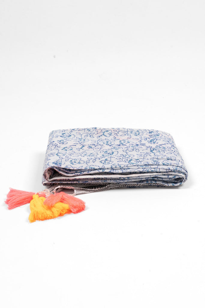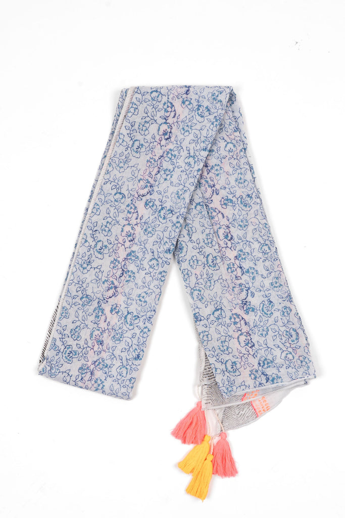 Talia Lightweight Cotton Tassel Scarf - Blue, Floral Print