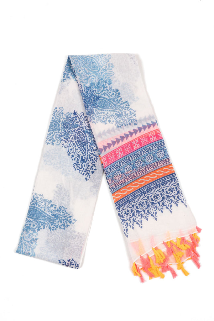 Talia Lightweight Cotton Tassel Scarf - White/Multi, Floral Print