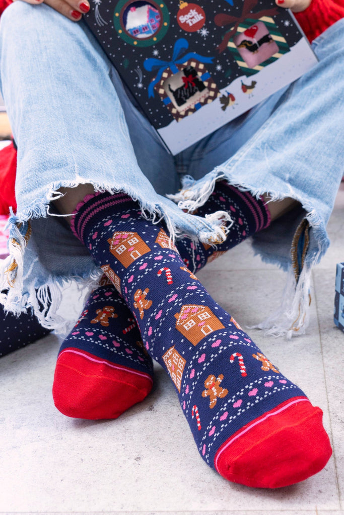 Women's Bamboo Socks - Navy Blue/Red, Gingerbread Fair Isle