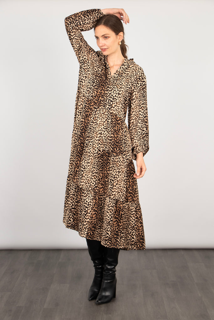 Frankie Midi Tiered Dress - Neutral, Leopard