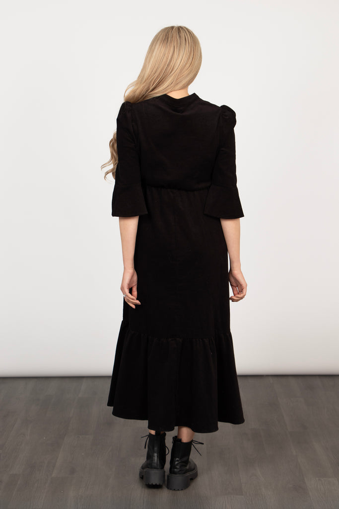 Lottie Cotton Midaxi Dress - Black, Babycord