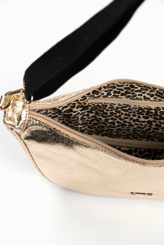 Bellamy Half Moon Crossbody Bag - Metallic Gold, Cracked Faux Leather