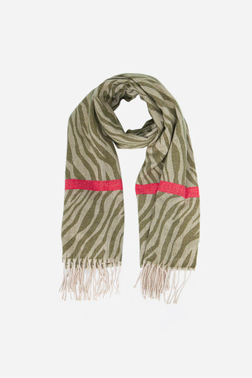 Khaki Fuchsia Zebra Print Scarf With Stripe