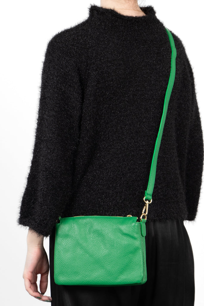 Gia - Italian Leather Crossbody Bag - Bright Green, Pebbled