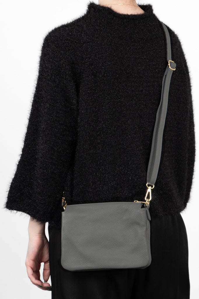 Gia - Italian Leather Crossbody Bag - Dark Grey, Pebbled