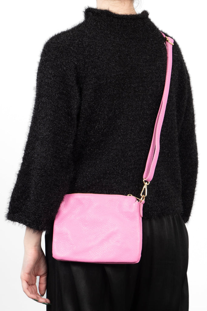 Gia - Italian Leather Crossbody Bag - Hot Pink, Pebbled