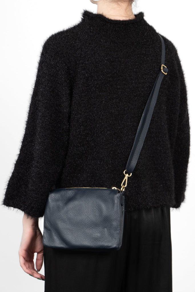 Gia - Italian Leather Crossbody Bag - Navy Blue, Pebbled