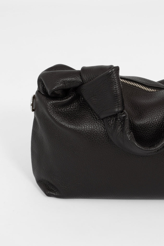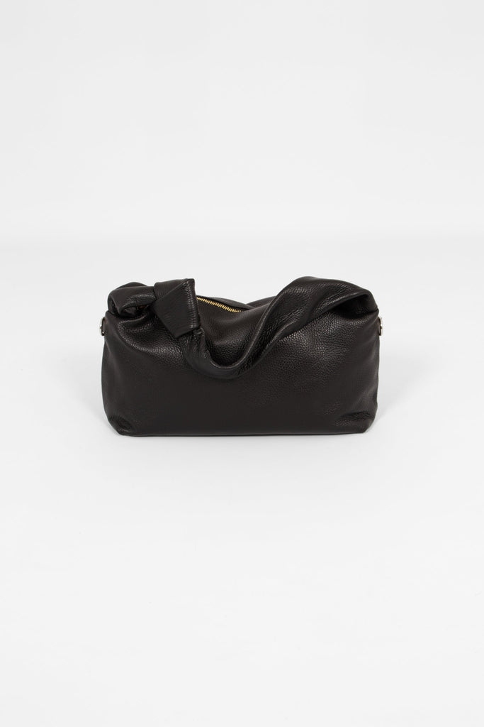 Devon Italian Leather Knotted Shoulder Bag - Black, Pebbled