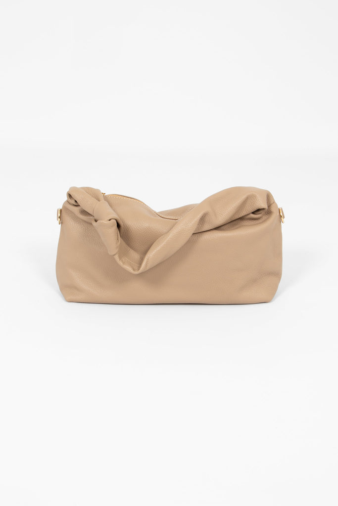 Devon Italian Leather Knotted Shoulder Bag - Taupe, Pebbled