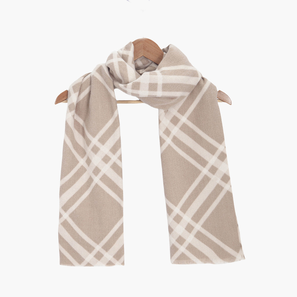 A lightweight scarf featuring a bold traditional check pattern. This classic design is eternally fashionable and versatile. Wear for any occasion.