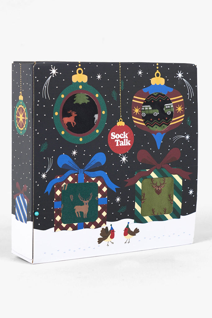 Men's Bamboo Crew Socks Festive Gift Set - Black/Green, Stag & Friends