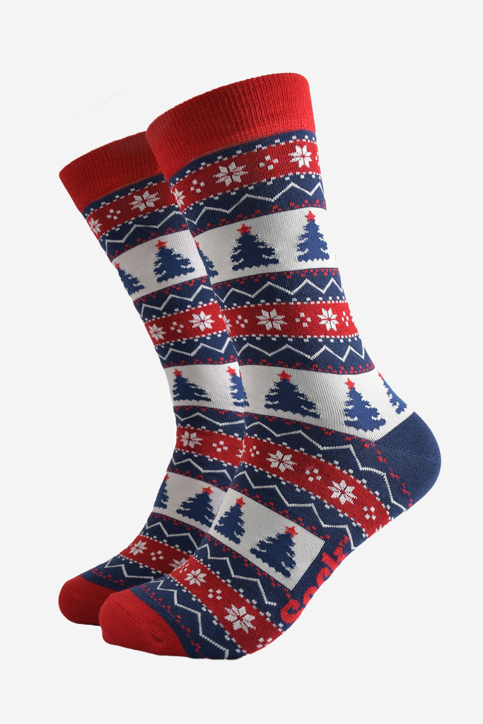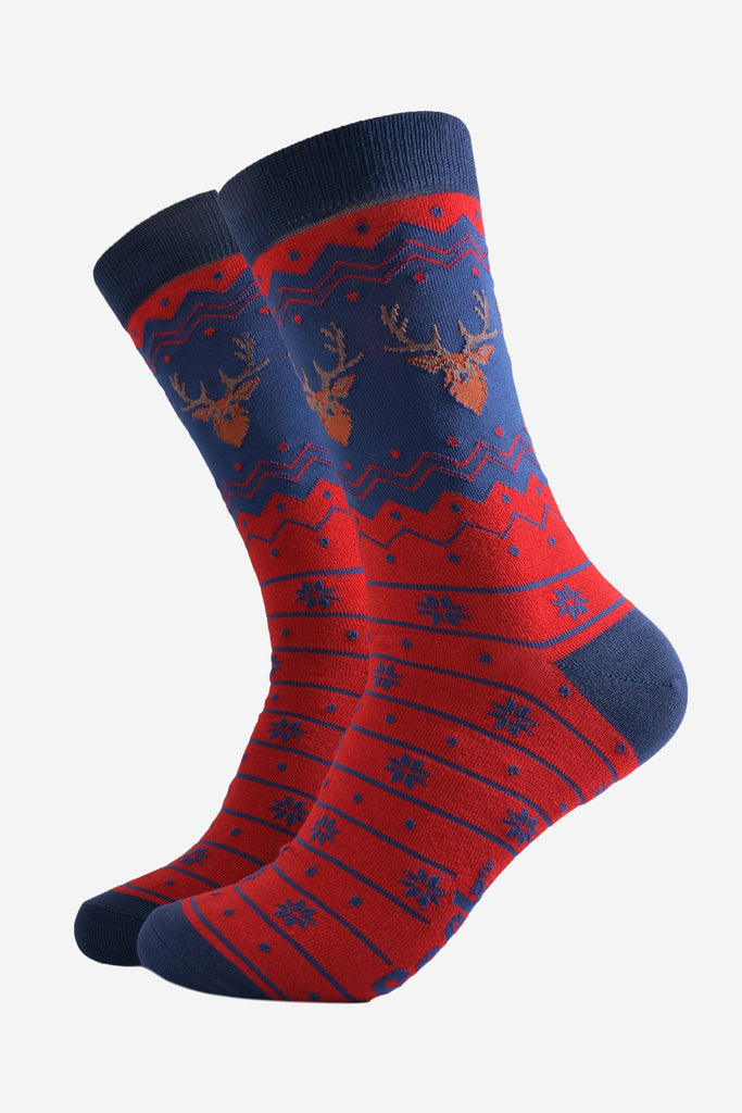 Men's Bamboo Socks Gift Box -Navy Blue/Red, Woodland Stag Christmas