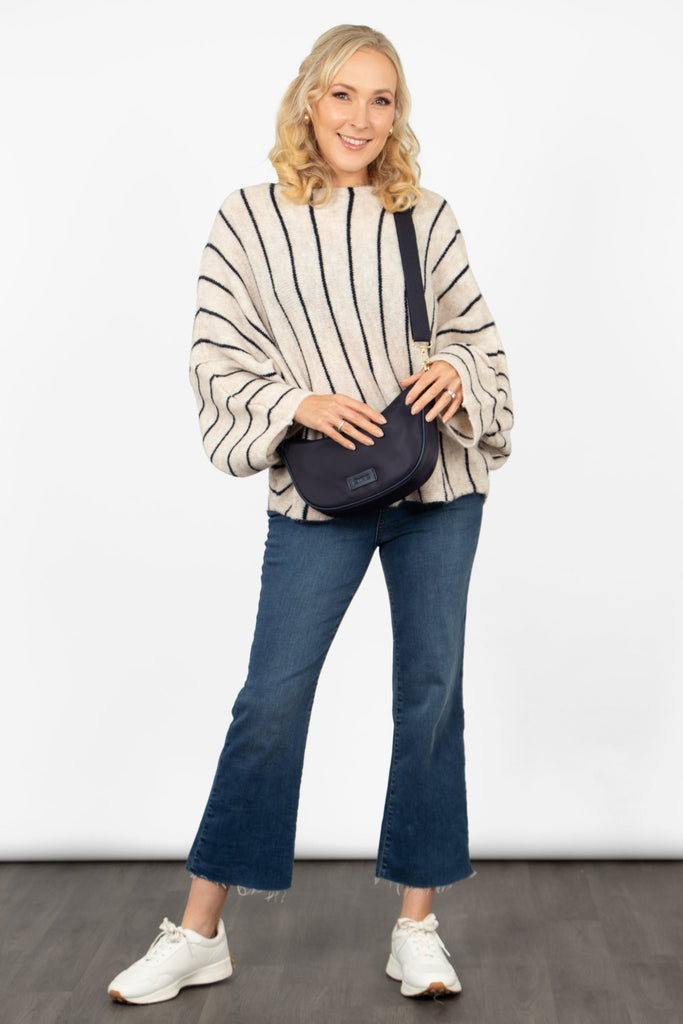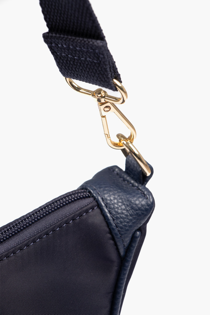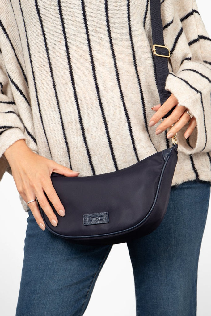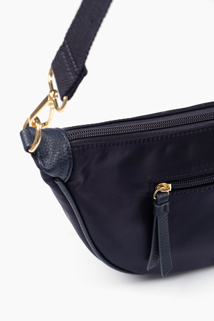 Quinn Half Moon Crossbody Bag - Navy Blue, Nylon/PU