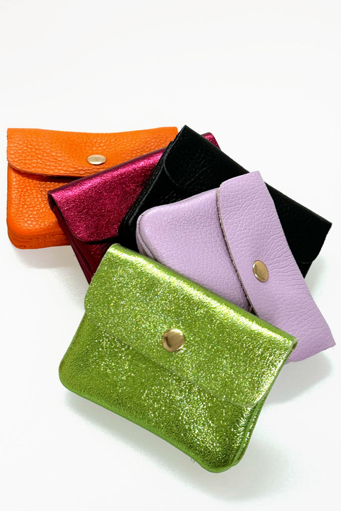 Small Italian Leather Coin Purse with Button Fastening and Internal Zip in Orange