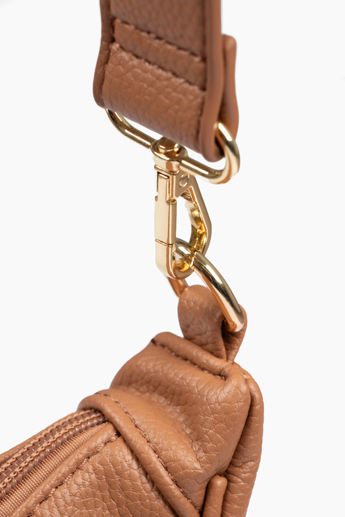 Stevie Half Moon Crossbody Bag - Tan, Pebbled Faux Leather