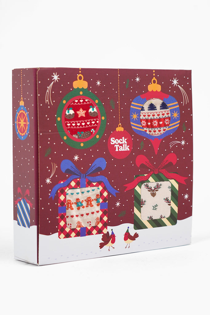 Women's Bamboo Ankle Socks Festive Gift Set - Cream/Red, Classic Christmas