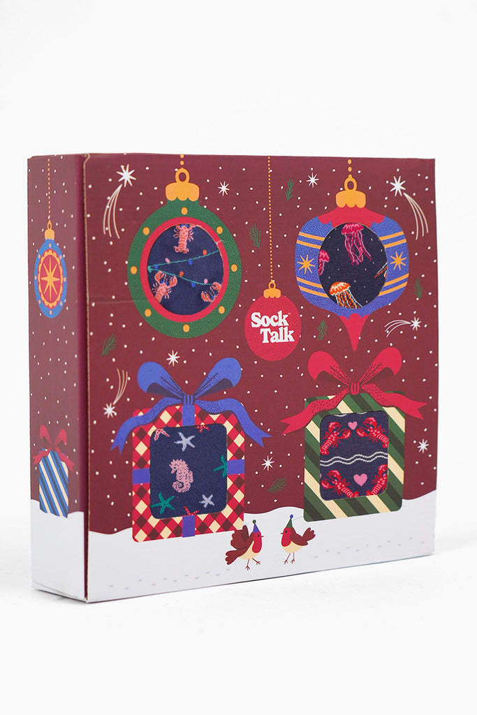 Women's Bamboo Ankle Socks Festive Gift Set - Navy Blue/Pink, Sealife